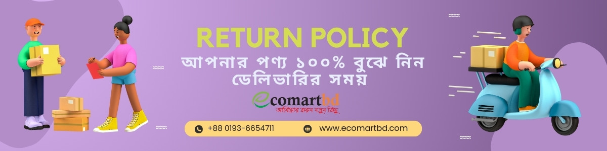 পণ্যটি পাওয়ার পরে ডেলিভারি ম্যানের উপস্থিতিতে পণ্যটি পরীক্ষা করা নিশ্চিত করুন। আপনি যদি কোন অসঙ্গতি বা ত্রুটি খুঁজে পান, দয়া করে আমাদের সাথে 01612866744 এ যোগাযোগ করুন।